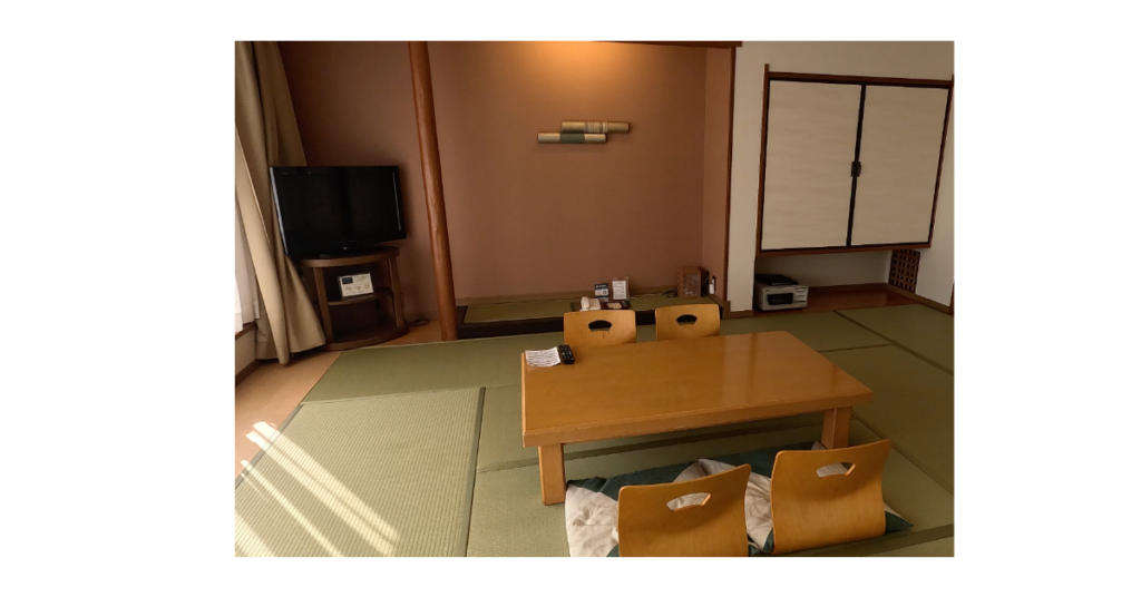 15時からチェックイン可能でちょうどその時間に着いた私たちは早々に手続きを済ませて入室。前日予約の残り一部屋ということもあって今回はクラシカルな昔ながらの和室。